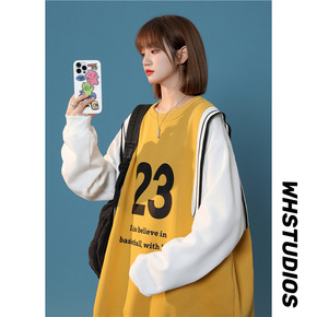 日系卫衣女假两件卫衣女春2022新款宽松韩版慵懒风...