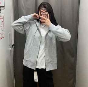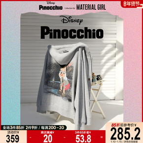 【匹诺曹联名】连帽卫衣外套女冬薄款浅灰色开衫宽松新...