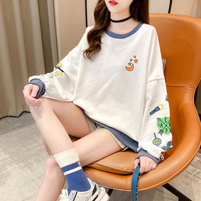 2022初秋新款流行时髦字母印花假两件卫衣圆领长袖...