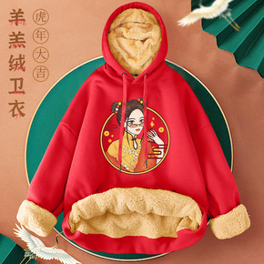 国潮连帽卫衣女秋冬加绒加厚2021新款羊羔绒冬款虎...