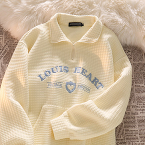 cuwu奶油白软糯华夫格刺绣字母polo衫学生情侣...