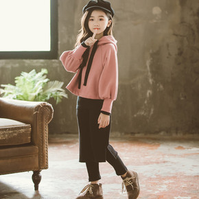 女童中大童装秋冬中大童新款基本纯色花边卫衣一件代发...