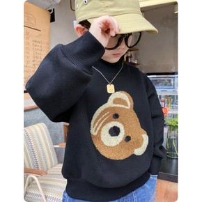 很潮的男童店儿童加绒卫衣 韩版毛巾绣小熊加厚复合中...