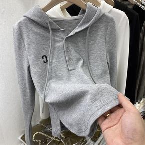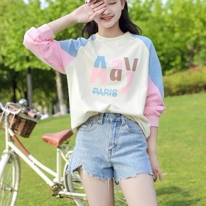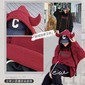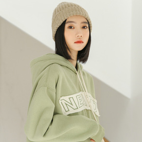 2022秋冬新款韩版慵懒字母绣花拼接连帽外套宽松套...