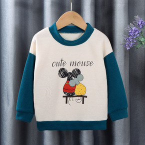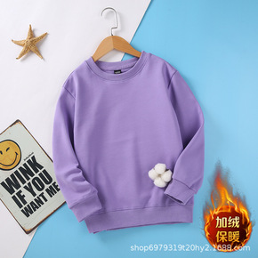 儿童加绒卫衣韩系童装秋冬新品男女童简约撞色套头保暖...