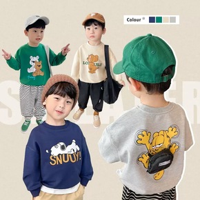 450g水貂绒儿童圆领套头衫微落肩可爱纯色宽松洋气...