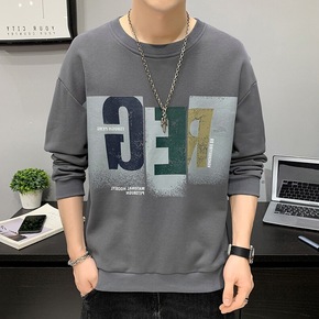 秋冬季帅气宽松嘻哈潮牌圆领卫衣男休闲百搭加绒加厚保...