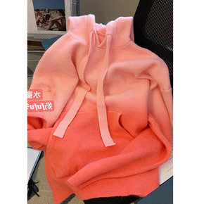 渐变扎染撞色连帽卫衣女秋冬2021新款中长款宽松慵...