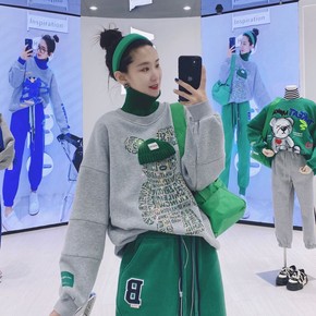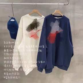 王炸拼接卫衣2021韩系新款秋冬针织绣花百搭宽松高...