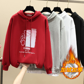 连帽卫衣女宽松韩版2021秋冬新款大码女装胖m妹长...