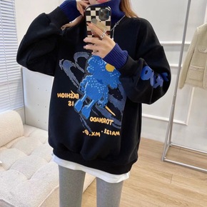 网红街重工烫钻小熊高领卫衣女秋冬2021新款宽松显...
