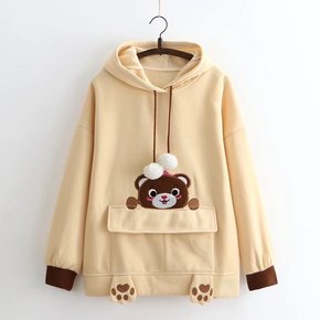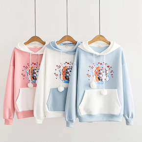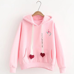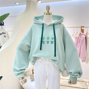 冬季加绒加厚清新洋气刺绣桃心宽松舒适保暖连帽卫衣女...