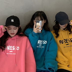 实拍冬装新款学院风加绒连帽卫衣女韩版学生字母印花套...