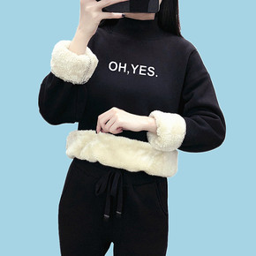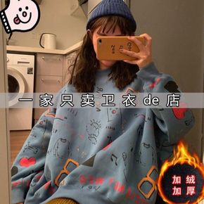 卫衣女加绒加厚学生保暖卫衣女加绒加厚冬不带帽加厚卫...