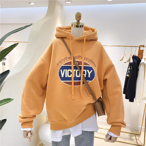 韩国东大门刺绣字母加绒卫衣女2021年新款冬季加厚...