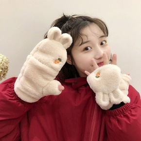 手袜学生手套加绒加厚冬季女可爱露指韩版保暖防寒中学...