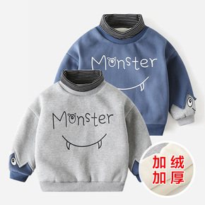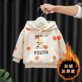 男童冬装卫衣女童韩版双层加绒加厚儿童连帽绒衫秋冬装...