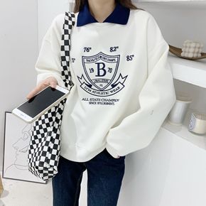 韩版冬新款棉质加绒加厚宽松刺绣字母翻领学院风长袖上...