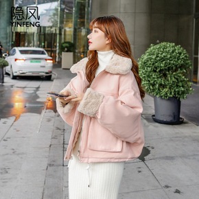羊羔毛外套女冬季加绒加厚宽松韩版学生潮ins假两件...