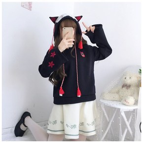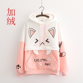 日系秋冬装新款可爱猫咪加绒保暖卫衣学生少女加厚外套...