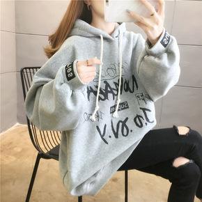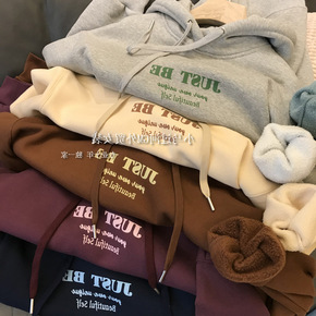 韩版chic卫衣加绒加厚款女ins字母印花宽松休闲...