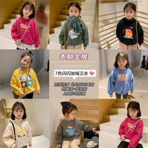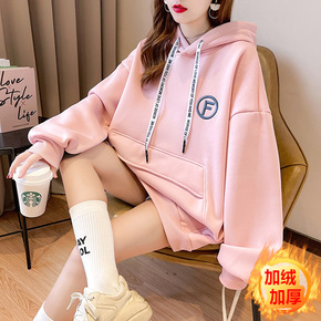 加绒加厚韩版卫衣女2021春季新款连帽打底衫宽松时...