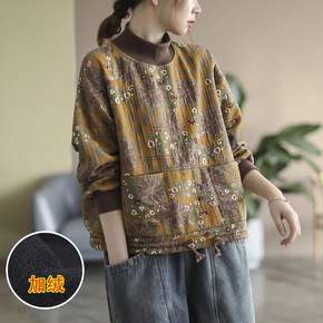 复古印花半高领保暖卫衣女21冬季新款加绒加厚宽松套...
