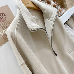 NOATAON 韩国款拉链翻领加绒加厚保暖纯色卫衣...