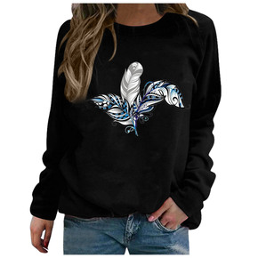 秋冬新款刺绣日文袖子波浪印花撞色加绒加厚套头卫衣女...