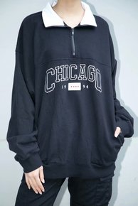 新品 韩国翻领半拉链休闲卫衣字母刺绣...