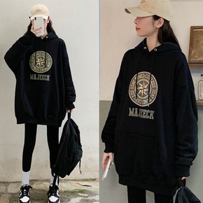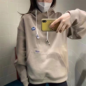 2021秋季新款宽松韩版胖MM慵懒风套头连帽卫衣2...