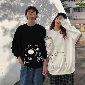 怪味少女秋冬新款情侣装连帽韩版卫衣bf风学生加绒宽...
