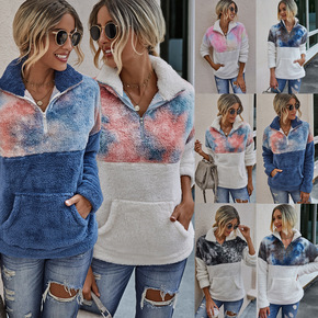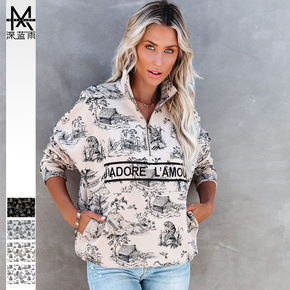 2021跨境新款印花女装 秋季半拉链立领卫衣 时尚...