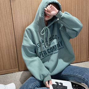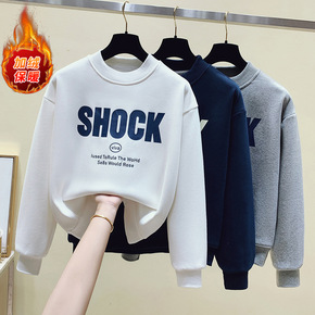 印花字母加绒加厚卫衣女装2021年新款冬季学院风长...