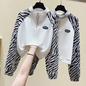 卫衣女2021秋季新款时尚洋气立领拉链卡通豹纹设计...