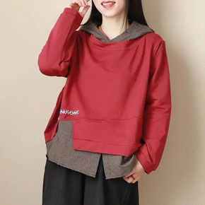 货号AL71秋装刺绣连帽卫衣女细格子不规则拼接假两...