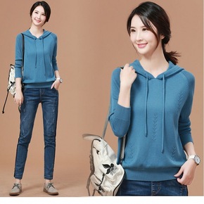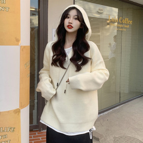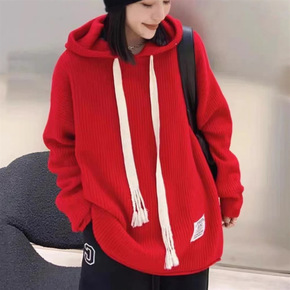 秋冬新品街头毛衣百搭连帽长袖中长款针织卫衣...