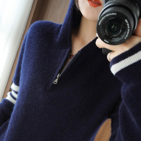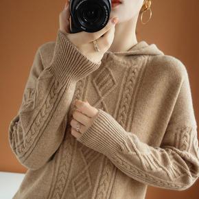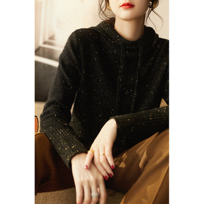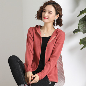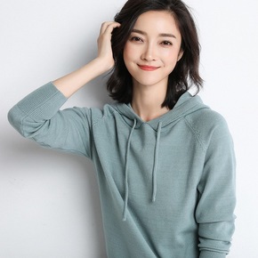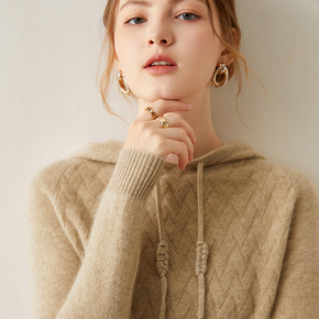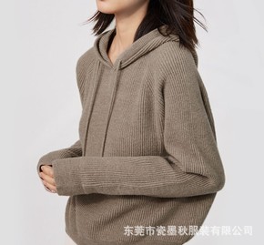 2022春秋季带帽羊绒衫女宽松短款连帽羊毛卫衣针织...