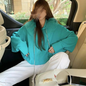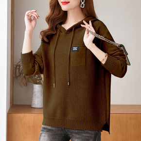 连帽卫衣女新款韩版纯色宽松慵懒针织打底衫短款扭花套...