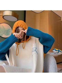 春秋羊毛衫女反季清仓减龄套头连帽卫衣宽松帽衫打底大...