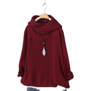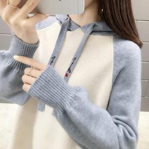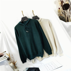 2021秋冬新款韩版宽松长袖毛衣打底衫纯色连帽针织...