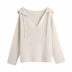 实拍chic韩风复古连帽系带针织衫秋冬新款2021...