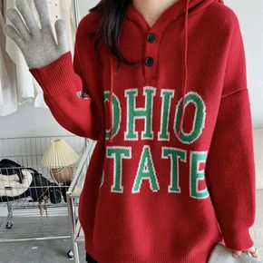 卫衣2022早春新款纽扣连帽套头针织衫韩版宽松慵懒...