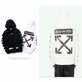 潮牌OFF油漆印刷黑箭头连帽卫衣OW涂鸦基础款减速...