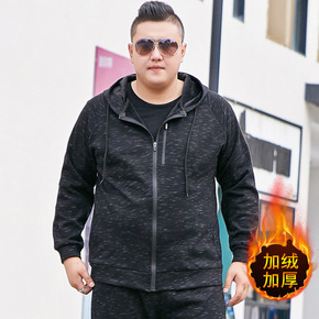 胖子男士加肥加大码开衫连帽卫衣肥佬特大号加绒加厚休...