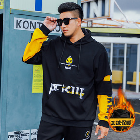 T7080AB 大码男士卫衣加绒加厚大胖子肥佬拼色...