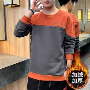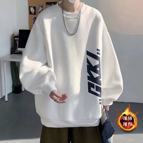 秋冬季圆领卫衣男潮流帅气宽松加绒加厚港风上衣休闲外...