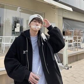 E1549冬季卫衣男宽松休闲日系羊羔绒上衣保暖男士...