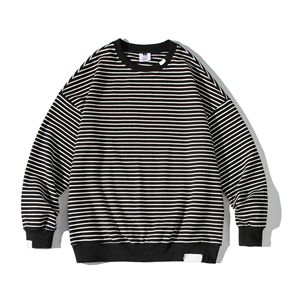 悟航2022潮流男装打底长袖圆领条纹卫衣男士春季新...