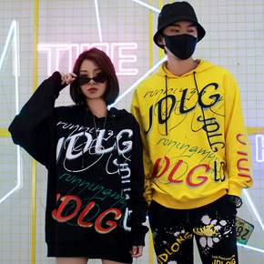 春秋季新款街头涂鸦卫衣连帽套头情侣款宽松涂鸦字母卫...